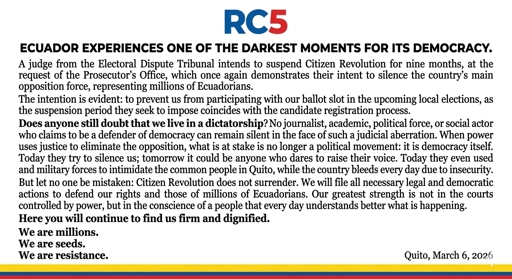 D.Noboa won in the last elections against Luisa González despite the surveys, but lost referendums soon after(, 6 months and 2 years afterwards, not respected), raising accusations of fraud. In any case, he multiplied the raids against her and others like Andrés Arauz or Aquiles Álvarez afterwards, and now banned their political party.